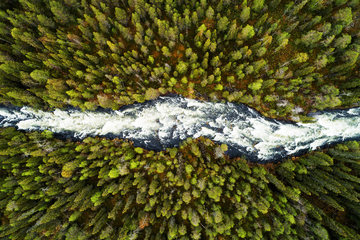 Mäslev kärestik keset elust pakatavat okaspuumetsa. Soome, 2019. aasta suvi.